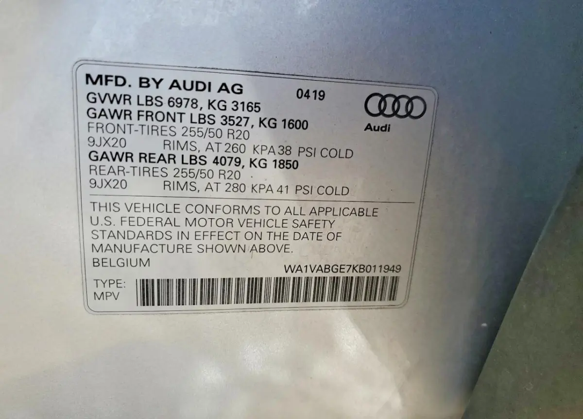 This Audi e-tron 2019 Silver was originally purchased at one of the major insurance auctions in the United States or Canada. The vehicle history is tied directly to its VIN code, which makes it possible to track the origin, condition, and circumstances of the sale. The photographs provided represent the actual state of the car at the moment of auction and serve as an important visual record of its technical and cosmetic condition.
