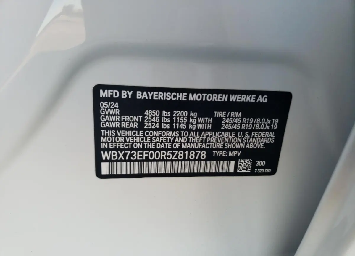 • Vin: WBX73EF00R5Z81878