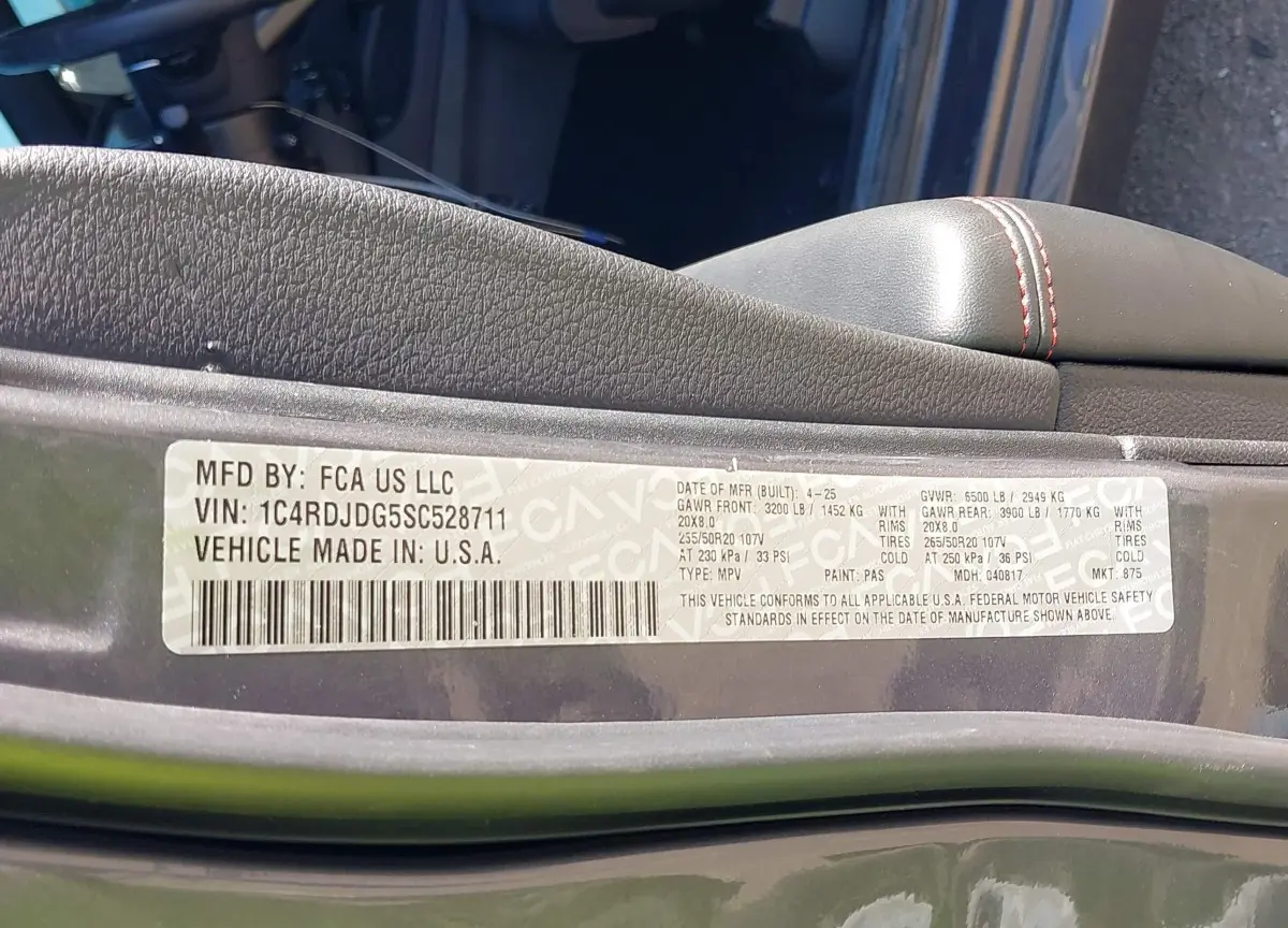 • Vin: 1C4RDJDG5SC528711