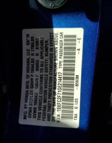 This Honda Civic 2016 Blue was originally purchased at one of the major insurance auctions in the United States or Canada. The vehicle history is tied directly to its VIN code, which makes it possible to track the origin, condition, and circumstances of the sale. The photographs provided represent the actual state of the car at the moment of auction and serve as an important visual record of its technical and cosmetic condition.