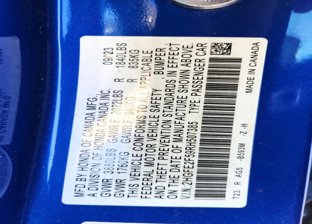 This Honda Civic 2024 Blue was originally purchased at one of the major insurance auctions in the United States or Canada. The vehicle history is tied directly to its VIN code, which makes it possible to track the origin, condition, and circumstances of the sale. The photographs provided represent the actual state of the car at the moment of auction and serve as an important visual record of its technical and cosmetic condition.