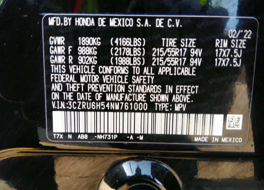 This Honda HR-V 2022 Black was originally purchased at one of the major insurance auctions in the United States or Canada. The vehicle history is tied directly to its VIN code, which makes it possible to track the origin, condition, and circumstances of the sale. The photographs provided represent the actual state of the car at the moment of auction and serve as an important visual record of its technical and cosmetic condition.