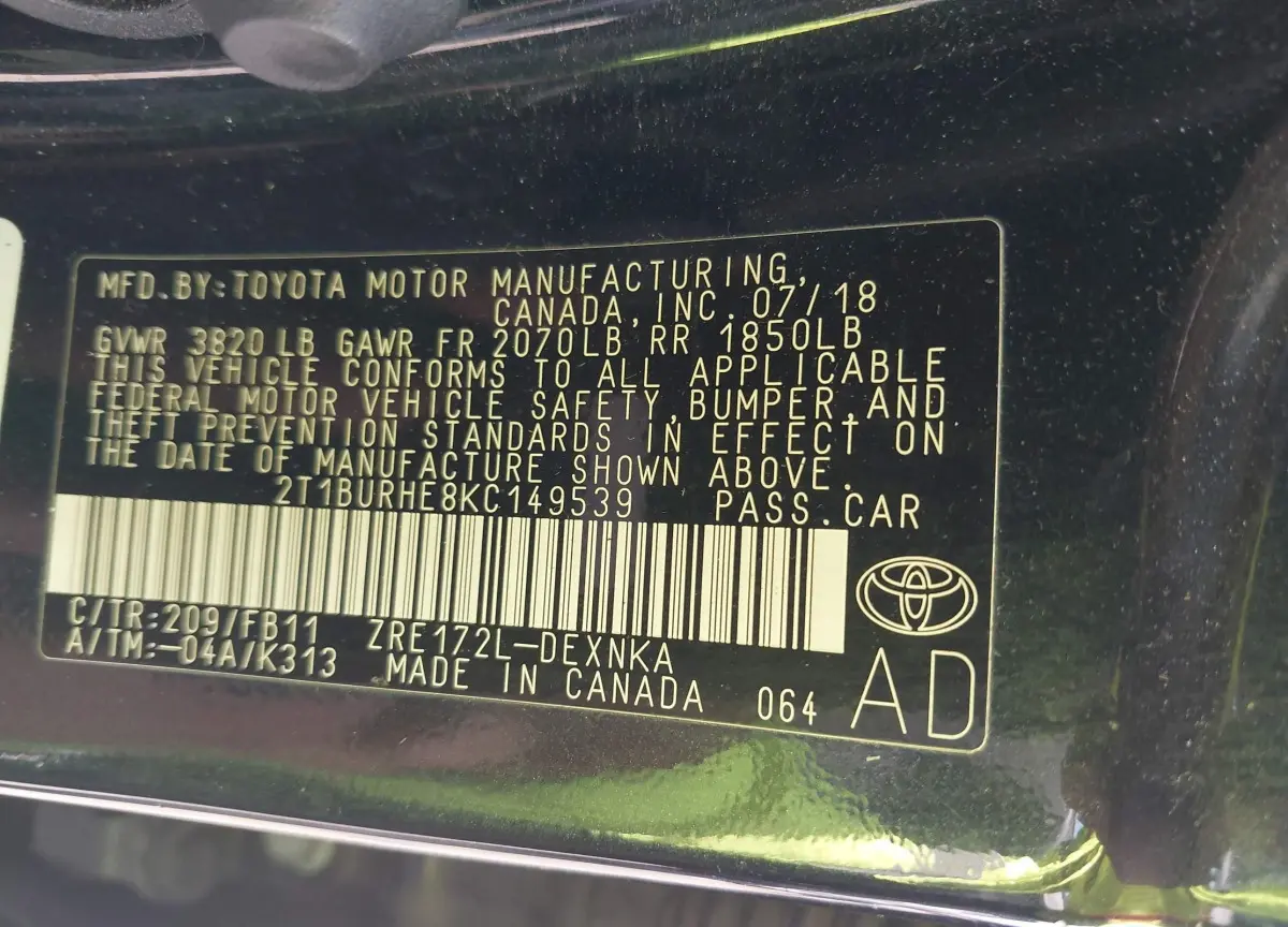 This Toyota Corolla 2019 Black was originally purchased at one of the major insurance auctions in the United States or Canada. The vehicle history is tied directly to its VIN code, which makes it possible to track the origin, condition, and circumstances of the sale. The photographs provided represent the actual state of the car at the moment of auction and serve as an important visual record of its technical and cosmetic condition.