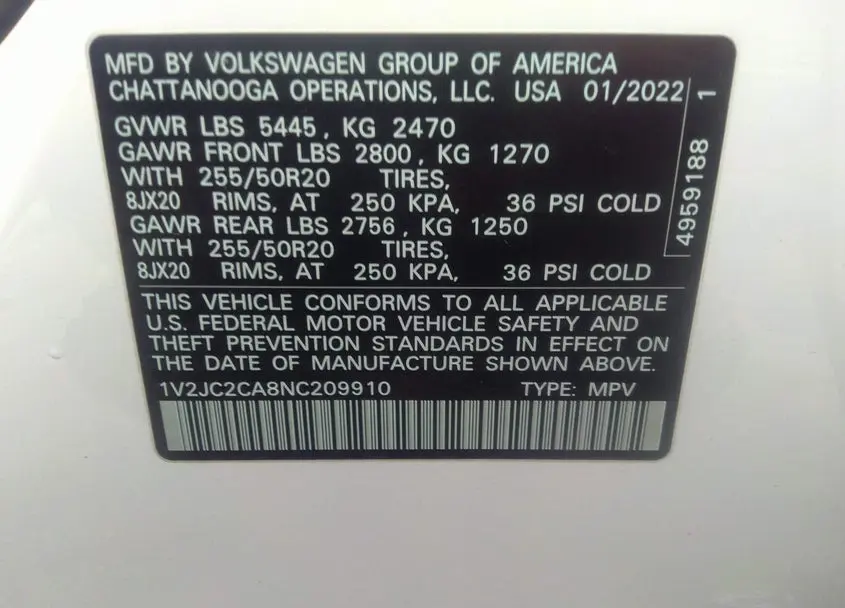Each lot presented on our website includes comprehensive information tied to the VIN code. This allows users to cross-check vehicle data, verify the history of ownership, and confirm accident or insurance records. The Volkswagen Atlas Cross Sport 2022 White corresponds to a car that was listed through one of the large insurance auctions in USA, which guarantees traceability and transparency of the information.