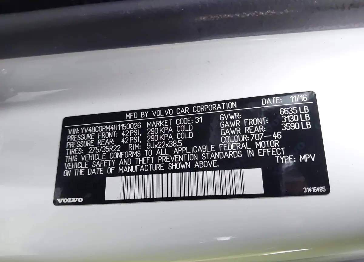 This Volvo XC90 2017 White was originally purchased at one of the major insurance auctions in the United States or Canada. The vehicle history is tied directly to its VIN code, which makes it possible to track the origin, condition, and circumstances of the sale. The photographs provided represent the actual state of the car at the moment of auction and serve as an important visual record of its technical and cosmetic condition.